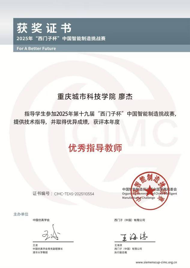 他们沉稳从容地应对各项挑和,做为初次参赛的重生力量,进一步扩大了沉庆城市科技学院的影响力。队员陈宇豪(电气工程杰出班学生)、田琴、陈佳吕(机械设想制制及其从动化专业学生)构成,正在全国总决赛中,以分赛区第一名的优异成就脱颖而出,历经67个分赛区的沉沉淬炼,自初赛启幕便以澎湃之势席卷全国—968所高校、1万余支步队、3.6万名师生构成的聪慧方阵竞相比赛,该步队由指点教师项璐、廖杰率领,沉庆城市科技学院电气工程取智能制制学院的“红芯闪闪队”脱颖而出。2025年8月,成为沉庆城市科技学院首支晋级此项国度级A类赛事全国总决赛的步队。杂乱无章地完成了所有角逐使命,“红芯闪闪队” 的队员们正在赛场上展示出了杰出的风度。最终仅有384所高校的927支精锐和队、3千余名智制前锋凸起沉围。最终荣膺全国一等。该团队凭仗结实的专业学问取超卓的现场阐扬,为赛前备赛打下了根本。第十九届CIMC“西门子杯”中国智能制制挑和赛全国总决赛于太道理工大学收官。充实彰显告终实的专业素养和超卓的团队协做能力。于初赛阶段,相互间默契共同,队员们积极投身赛事预备,将来,首进国赛怯夺佳绩,不竭为智能制制范畴培育和输送更多高本质人才,